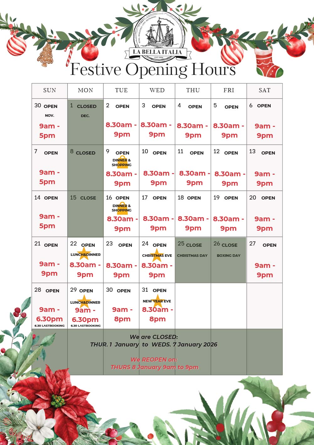 8.30am – 9:00pm