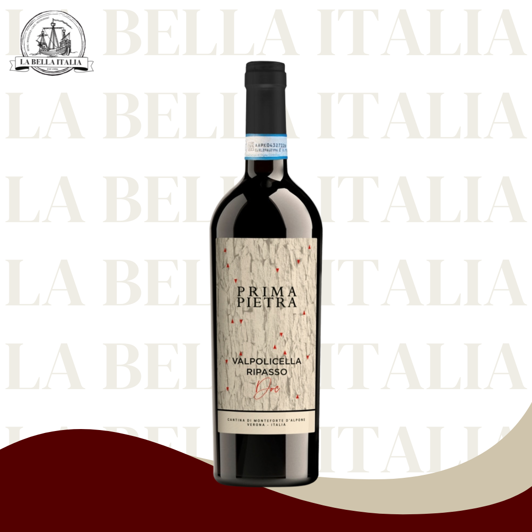 Rich and layered, the Prima Pietra Valpolicella Ripasso reveals aromas of cherry, plum, and hints of spice. Medium to full-bodied with soft tannins and a lingering finish, it pairs beautifully with roasted meats, rich pasta, or aged cheeses — a sophisticated choice for any occasion.