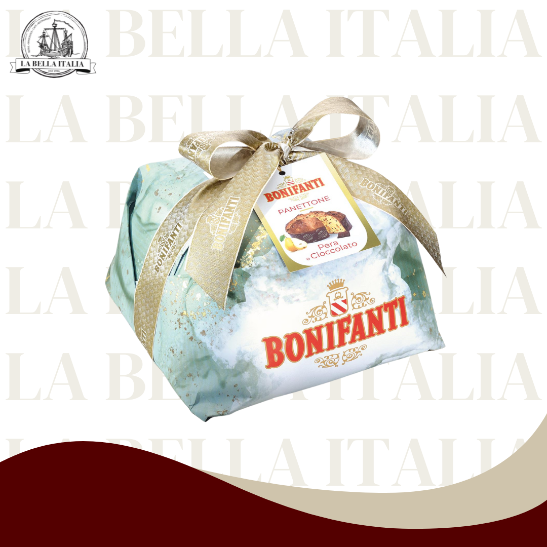 Chefs, confectioners and gourmets are totally in love with this combination. Inside the Panettone glaze-free you can find the cocoa butter, the vanilla beans from Madagascar, the fresh barn eggs, selected flours, the first-choice butter together with bits of candied pear and extra-dark chocolate chips.